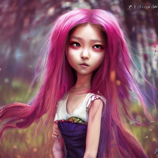 an epic fantasy comic book style full body portrait painting of a beautiful South Korean singer, long fire hair, cute, character design by Mark Ryden and Pixar and Hayao Miyazaki, unreal 5, hyper realistic, octane render, cosplay, RPG portrait, dynamic lighting, intricate detail, summer vibrancy, cinematic