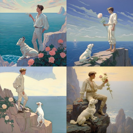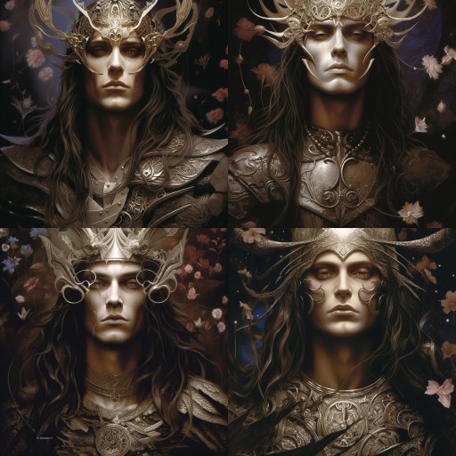 It’s a day of experimenting with prompts and artists names. The plan is to create a deck of Tarot cards, with characters and scenes that share a particular style throughout.