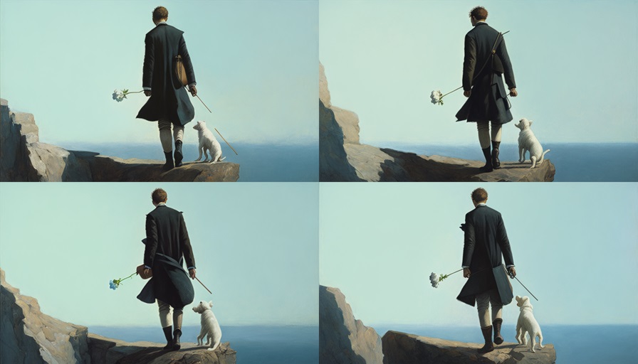 Remembering the Tarot Deck, I asked Bing for a description of the Fool Card, because I like fools. I took part of that description and added some details myself. I won’t give you the prompts for these because they are for someone else but I started by adding the Artist Monet to the description and then, one of my favorite’s, Turner. The results are below.